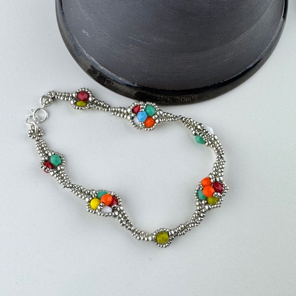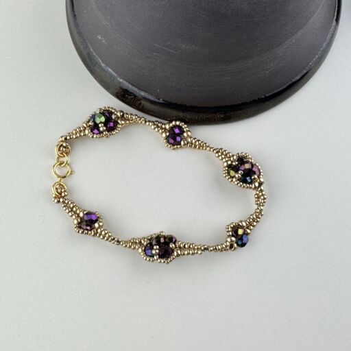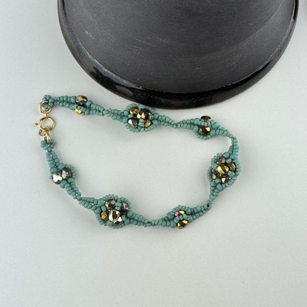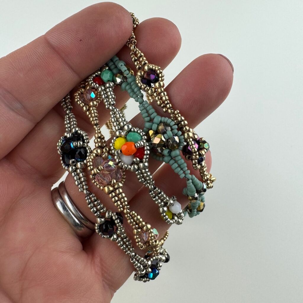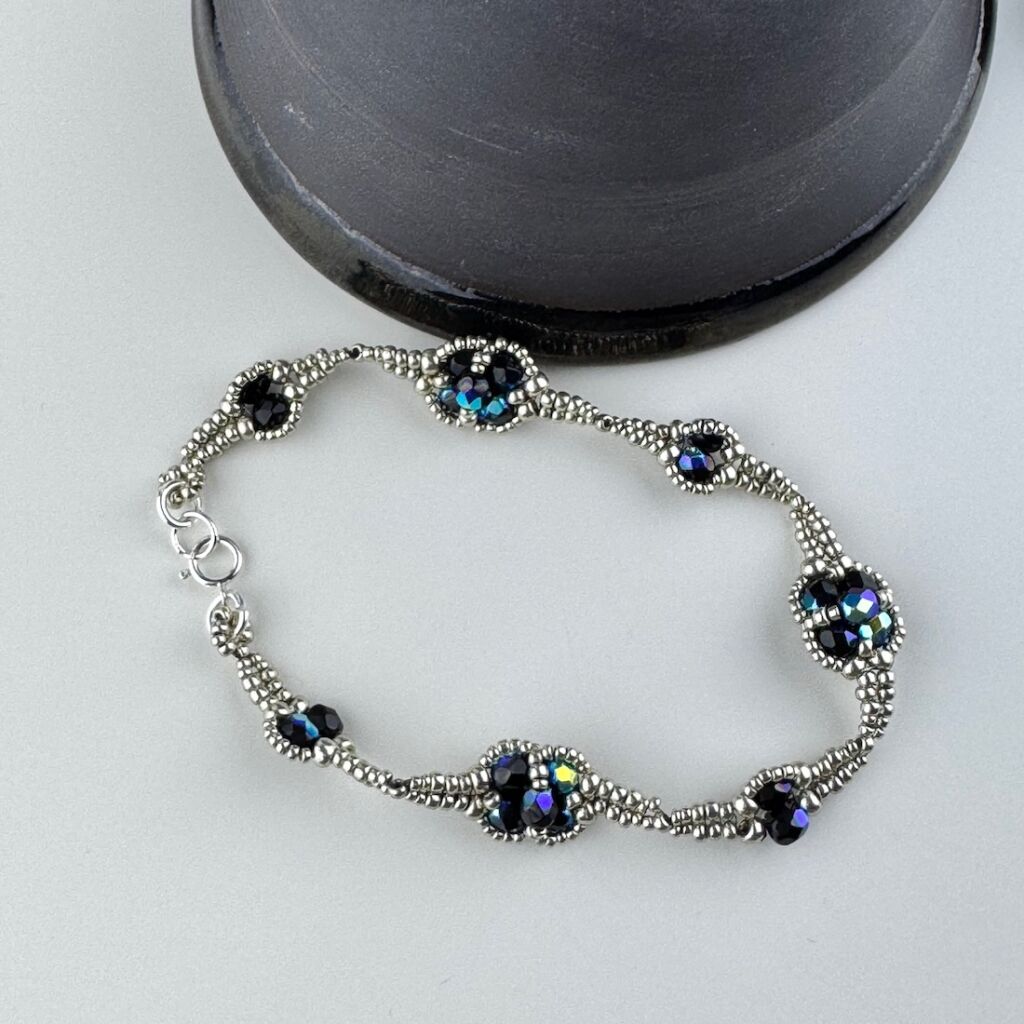 Ava bracelet, textured design with Czech crystals and seed beads.