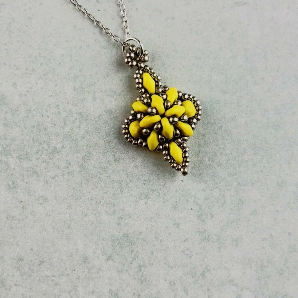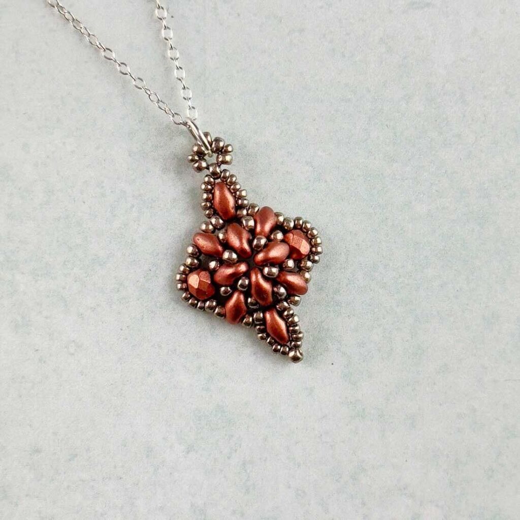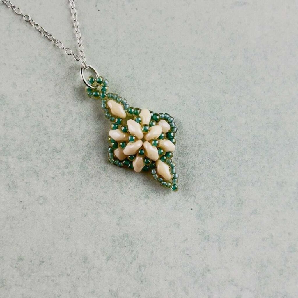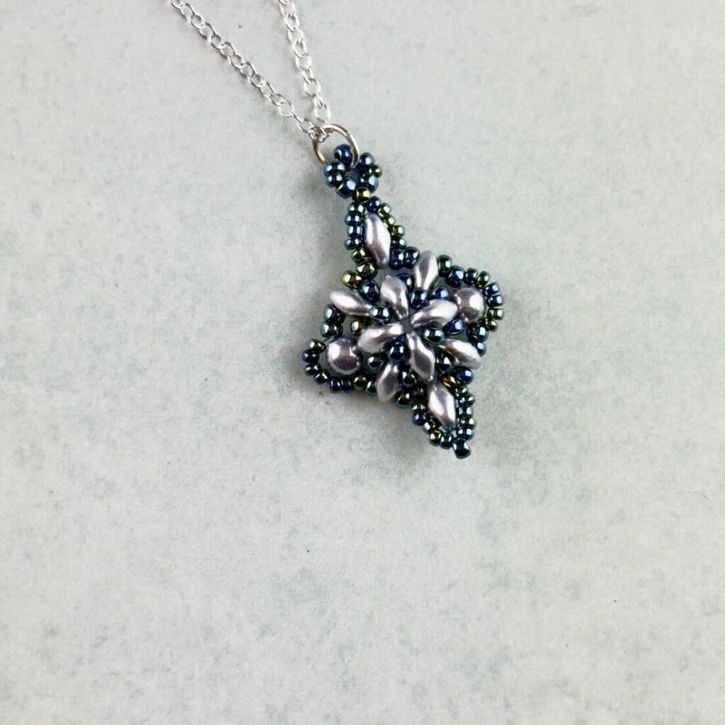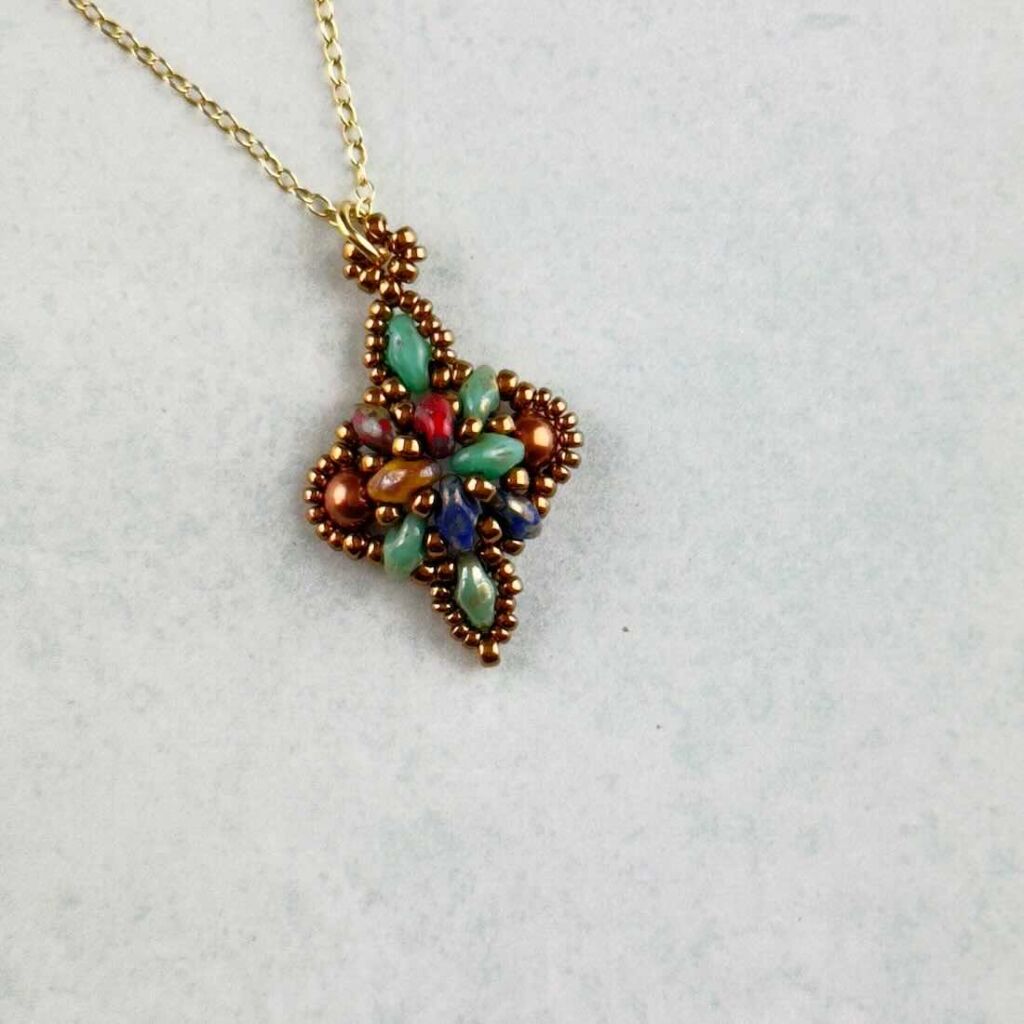 Pretty beadwoven pendant with Czech beads and seed beads.