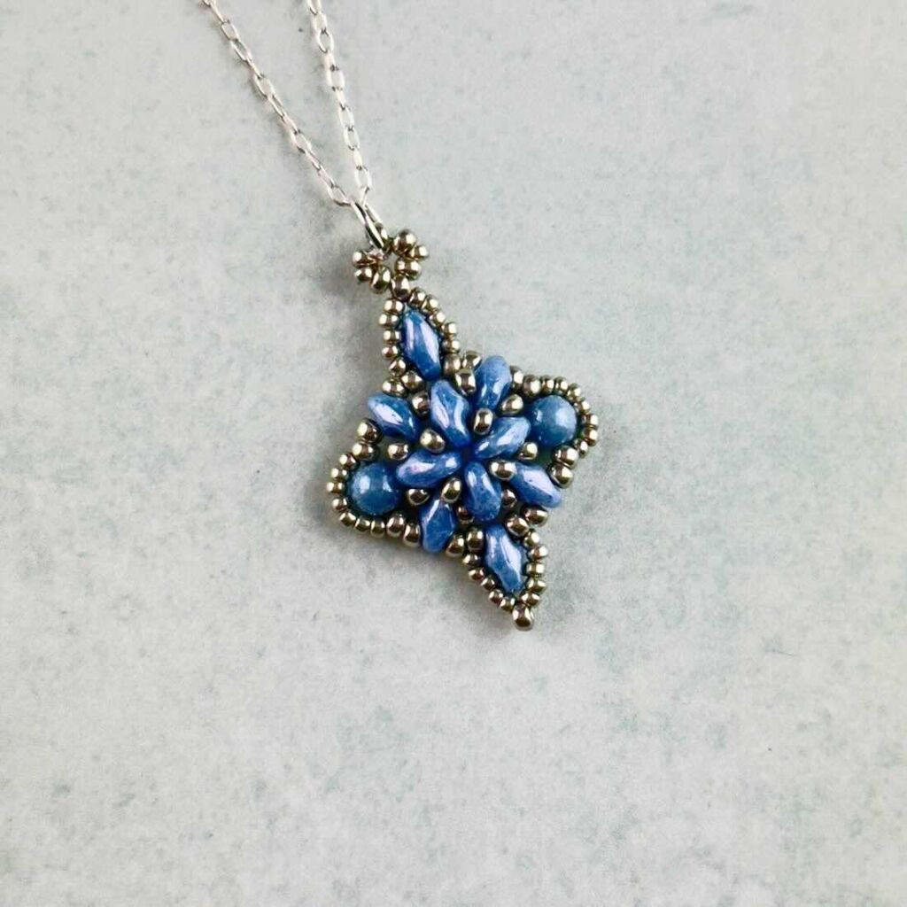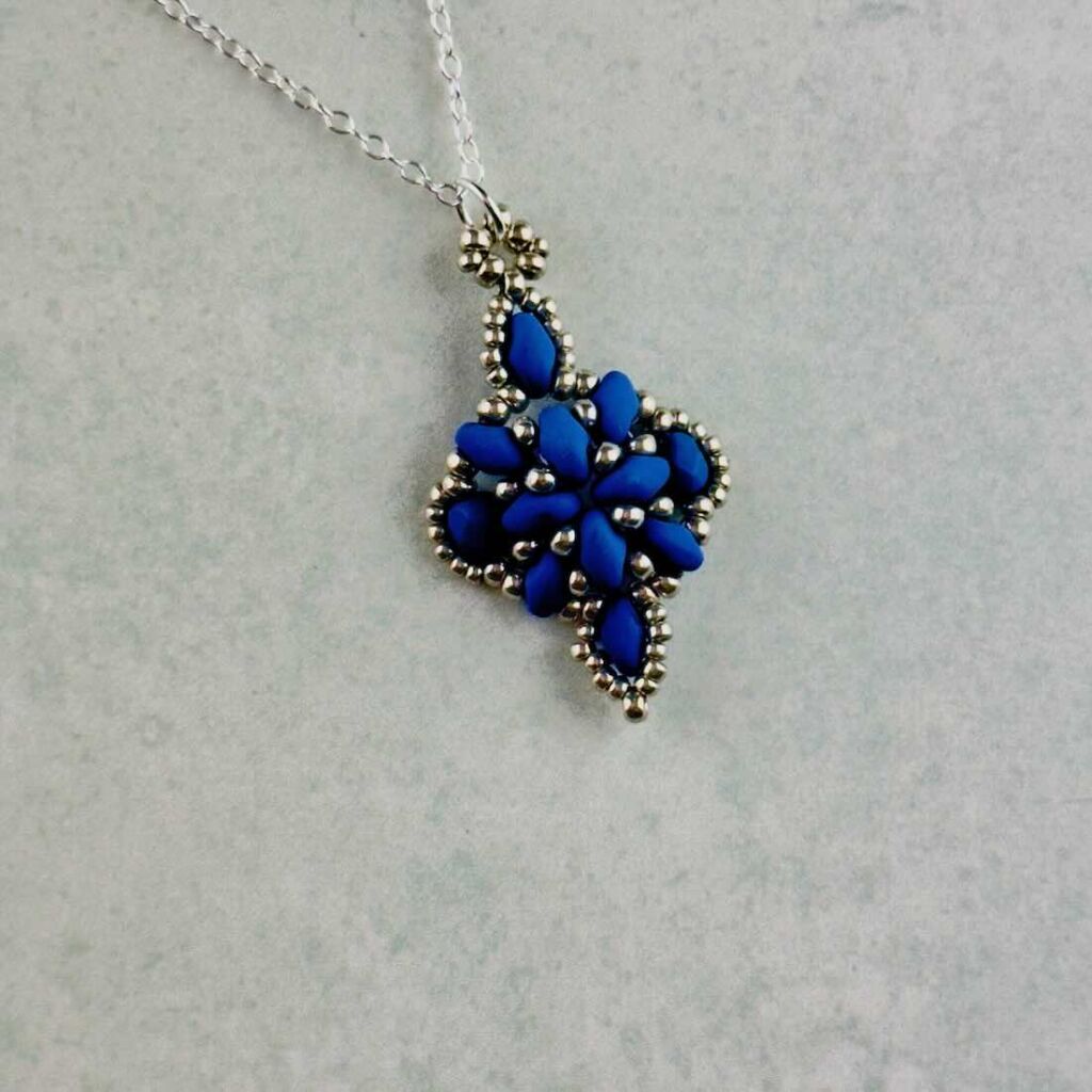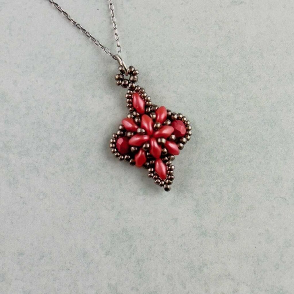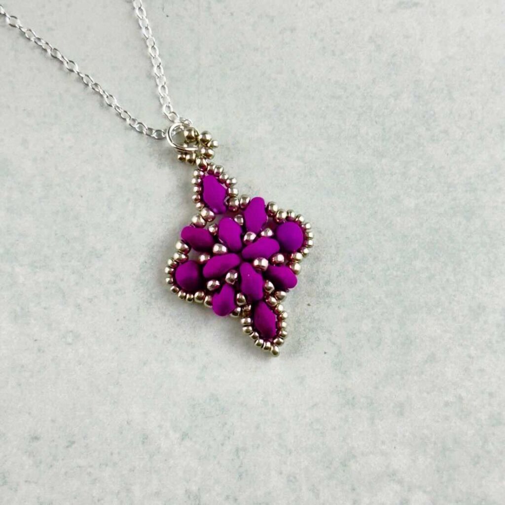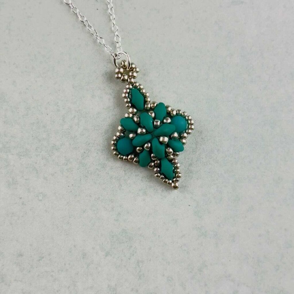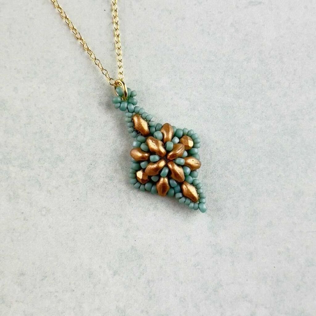 Pretty beadwoven pendant with Czech beads and seed beads.