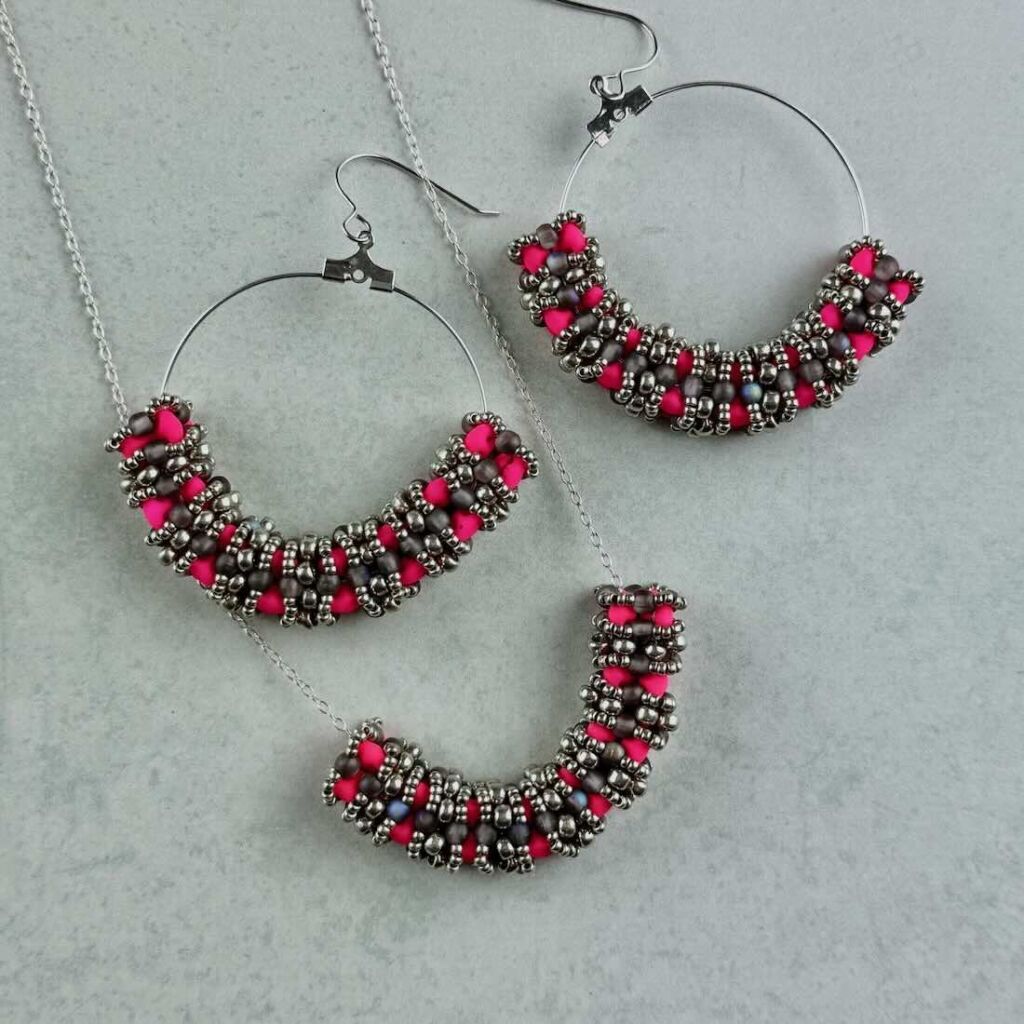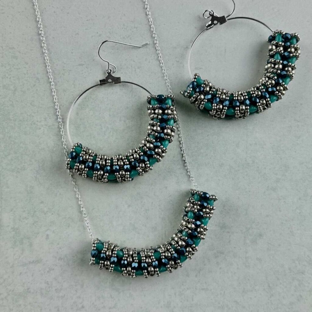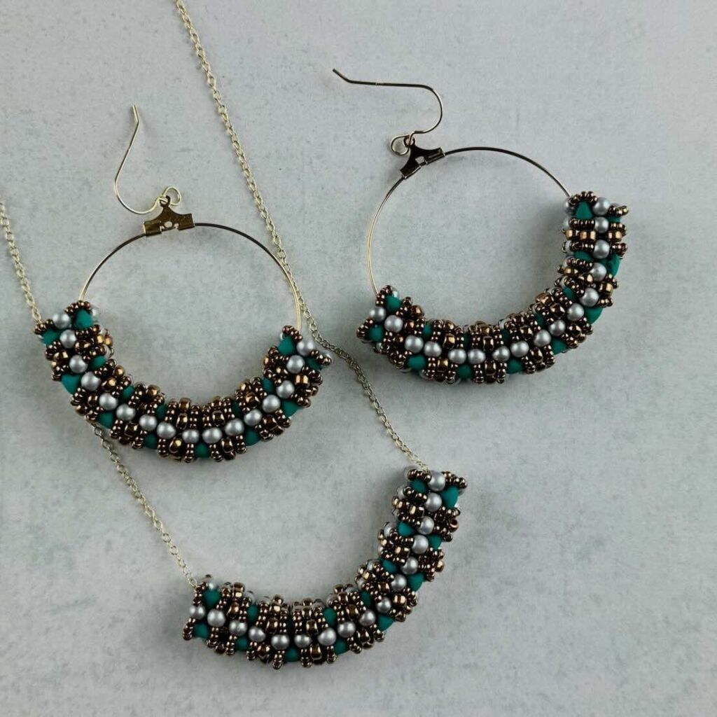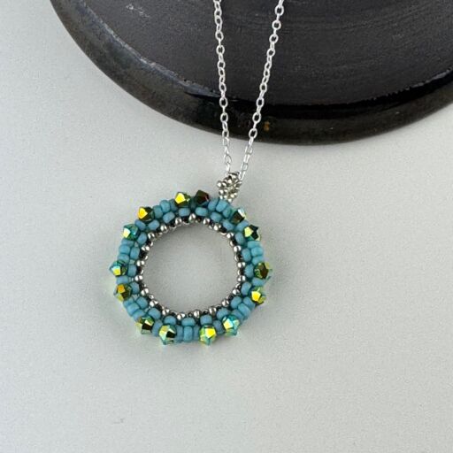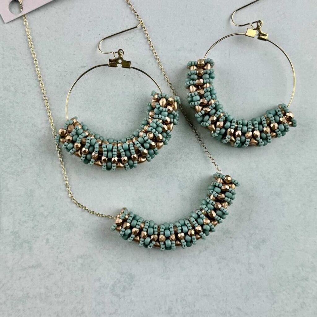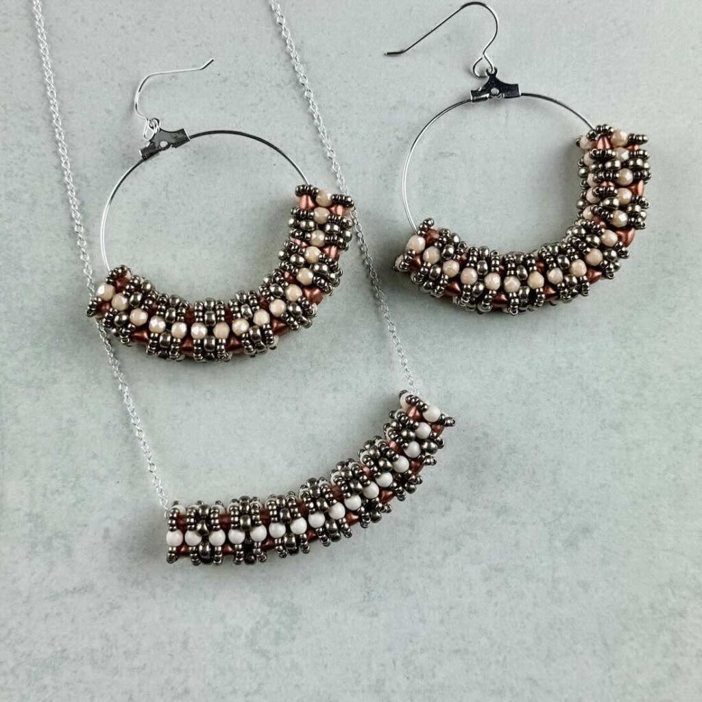 Stylish, simple beadwoven necklace, draped on delicately chain.