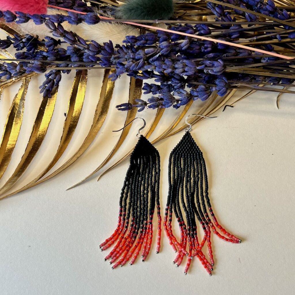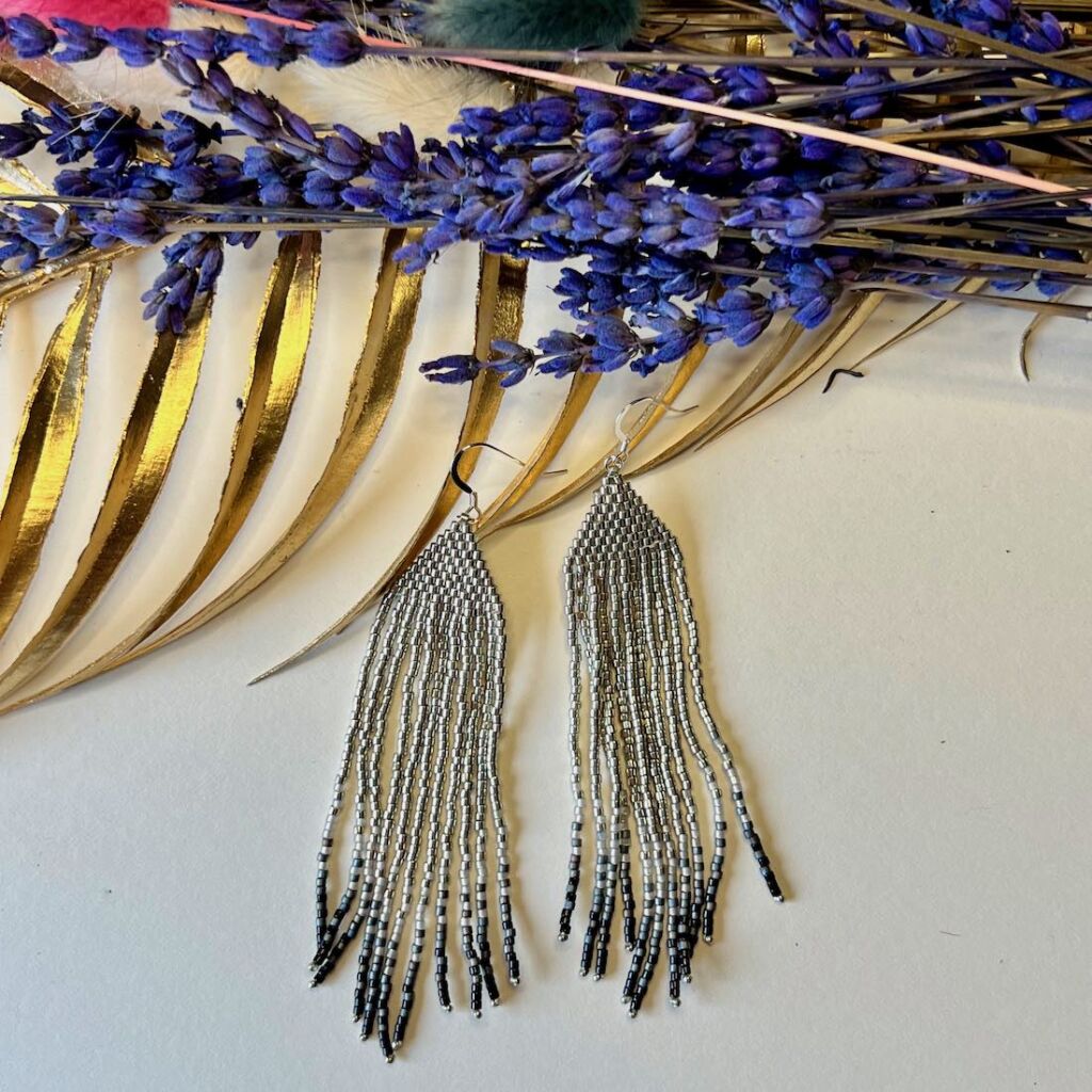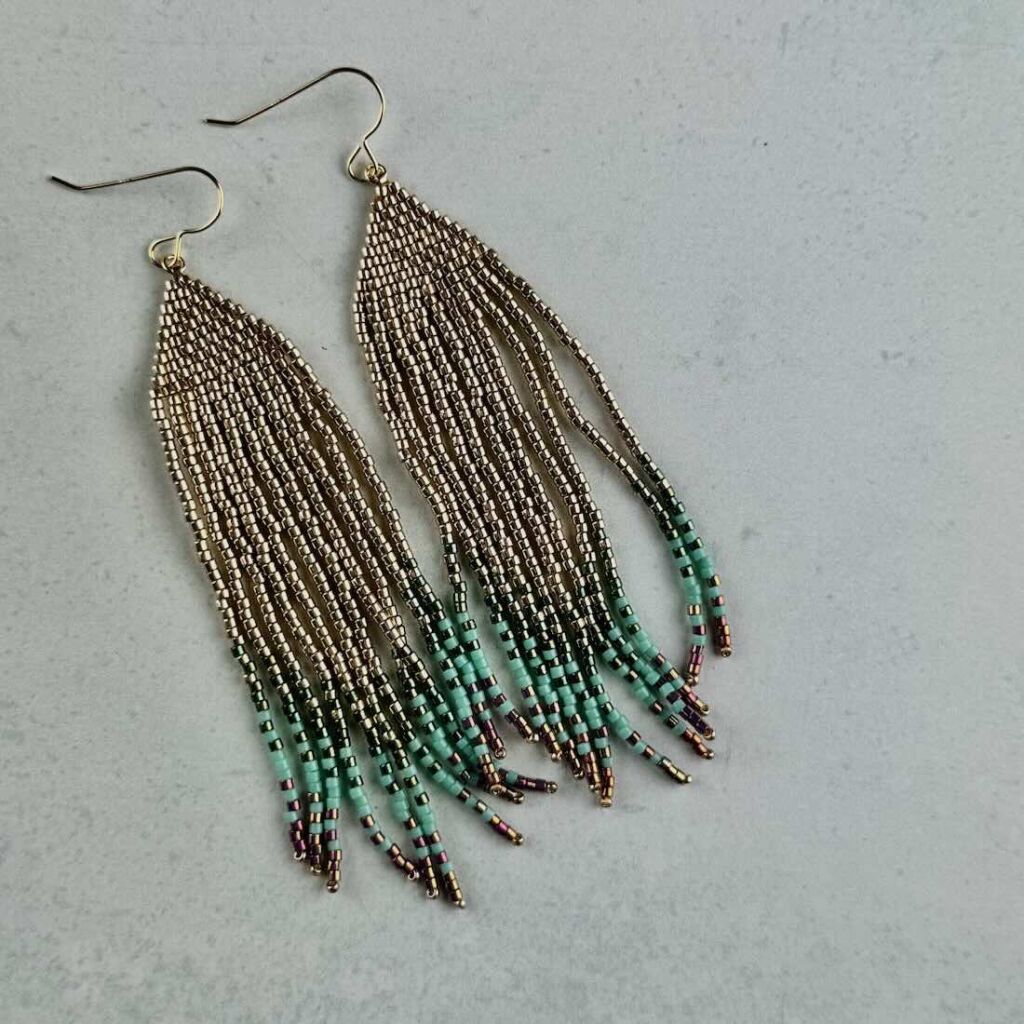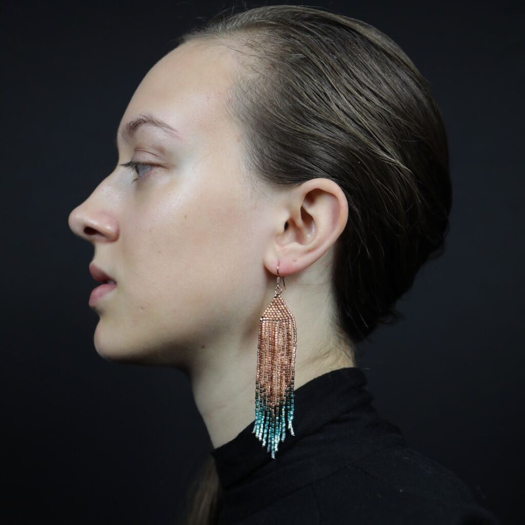 Statement fringe beadwoven earrings.