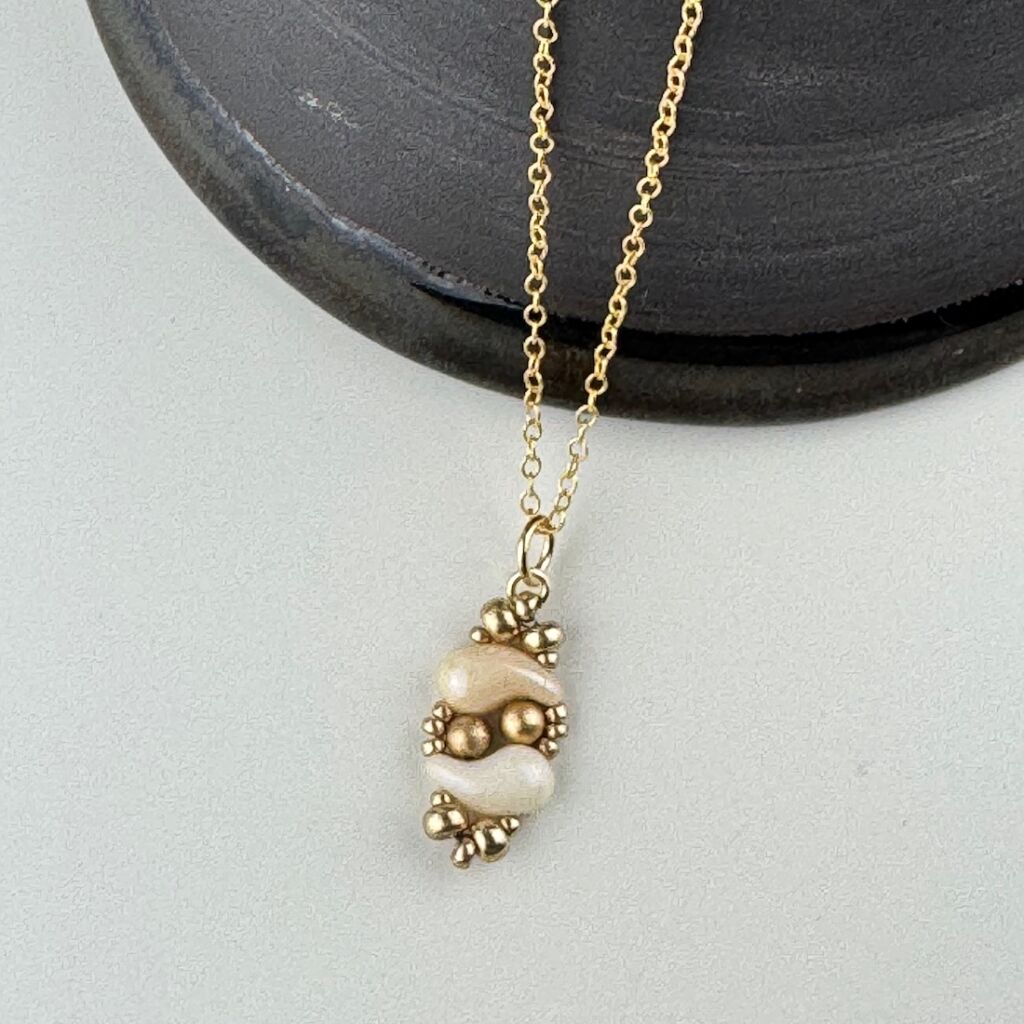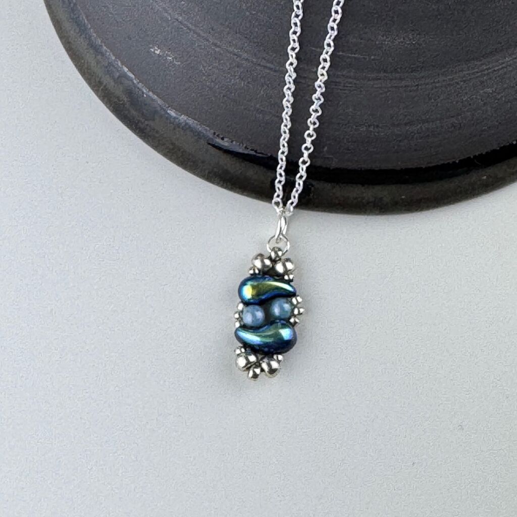 Paisley Pearls delicate pendant with paisley shaped Czech Beads and pearls.