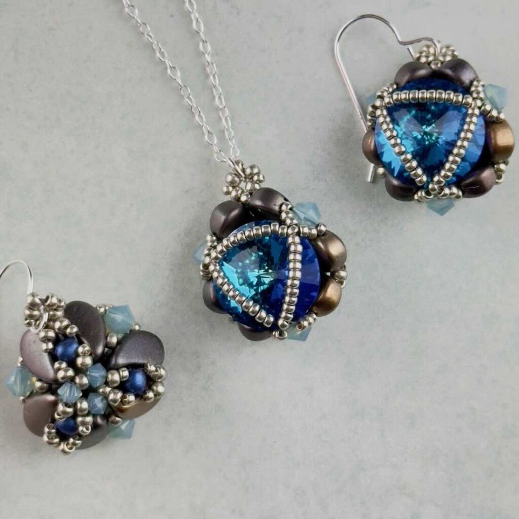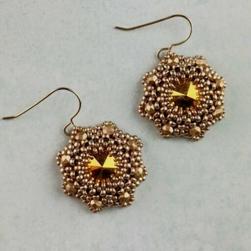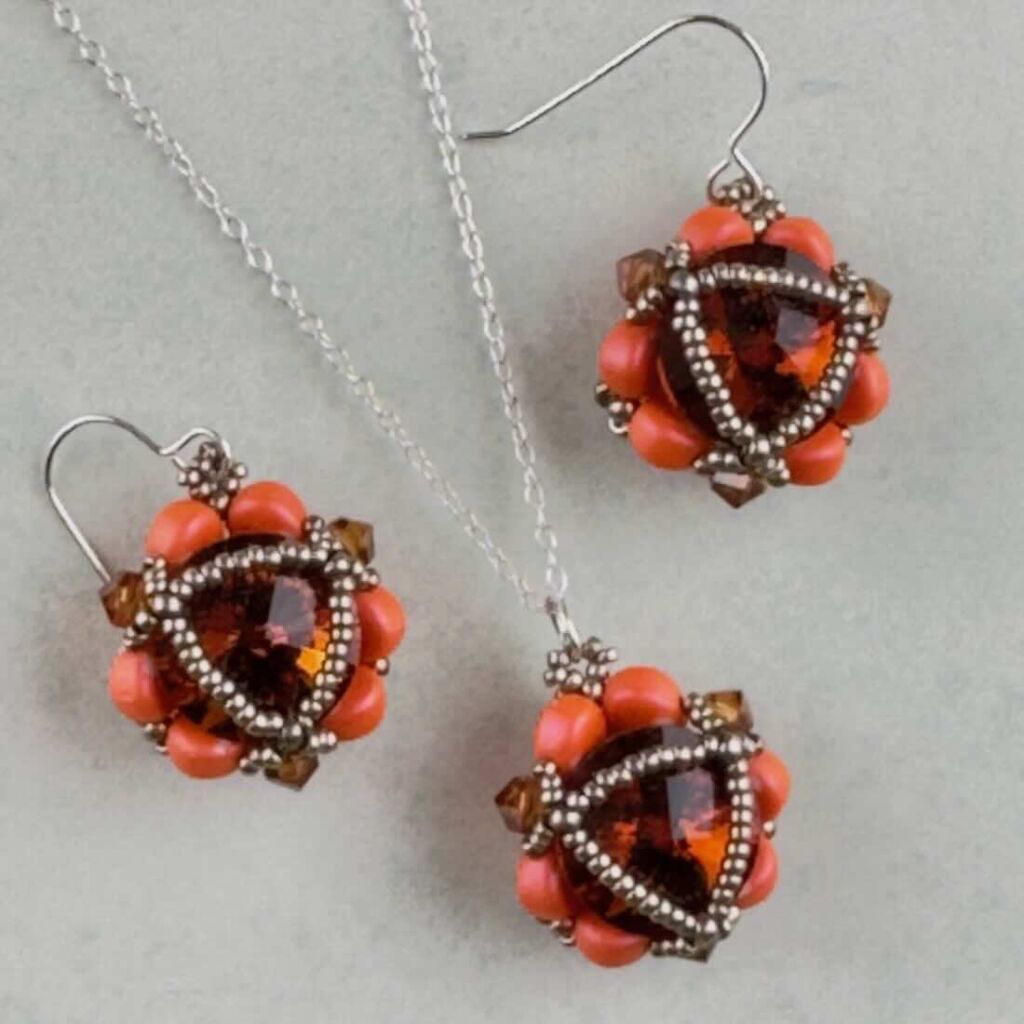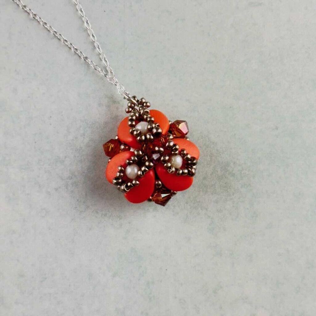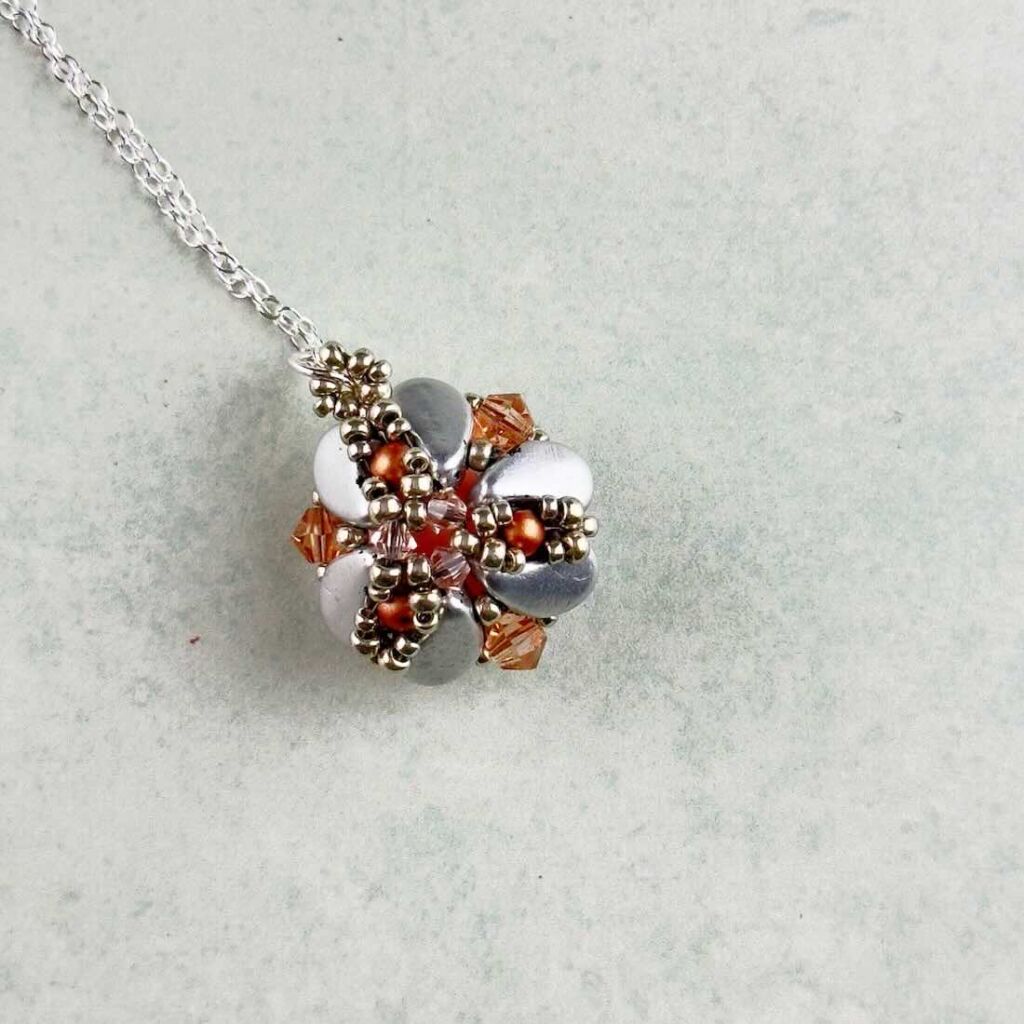 Unique beadwoven pendant featuring a large crystal centrepiece which is as pretty from the back as it is from the front, so can be worn either way round.