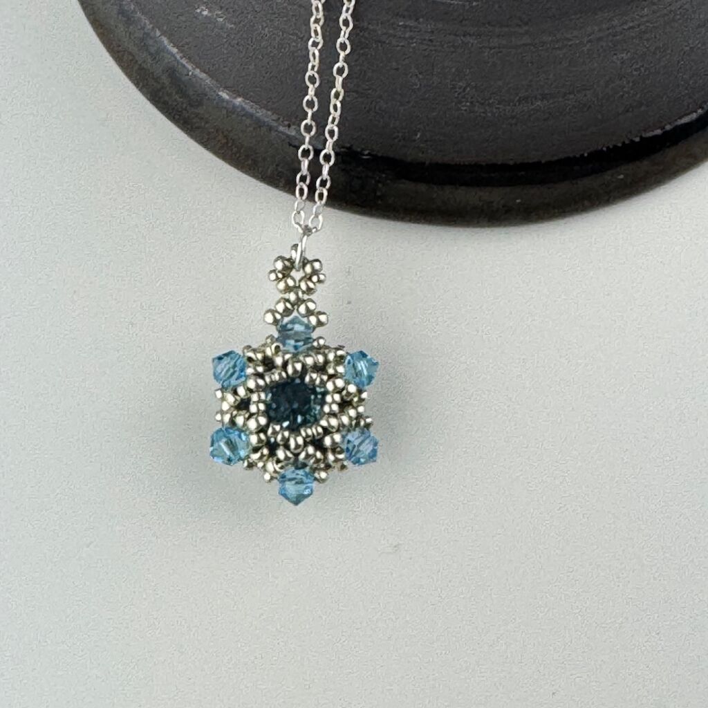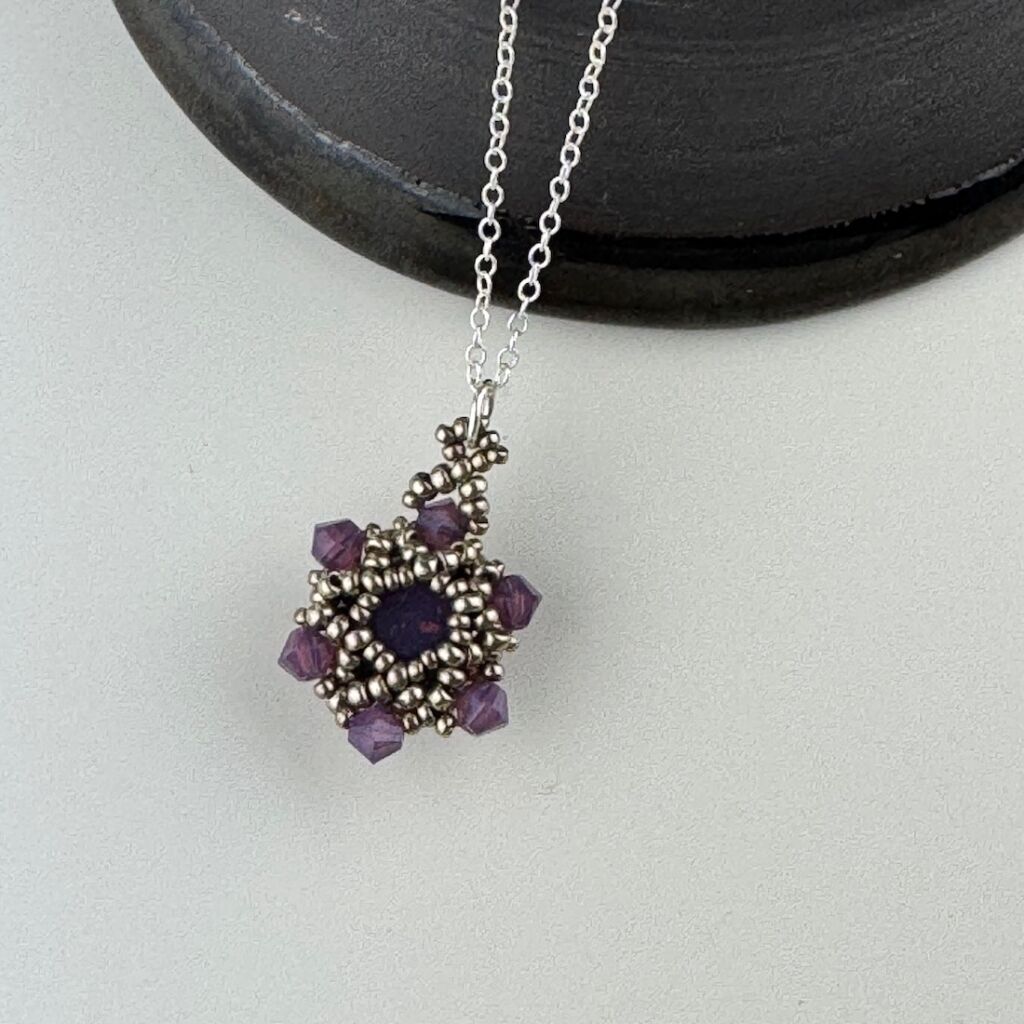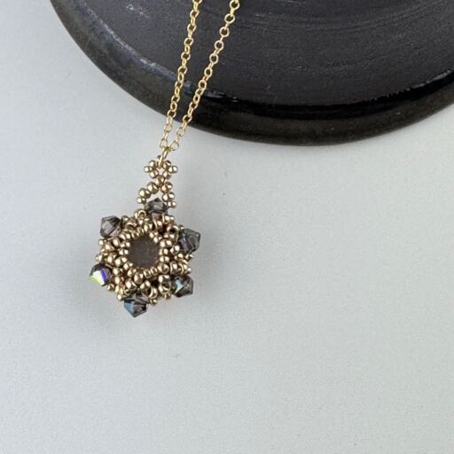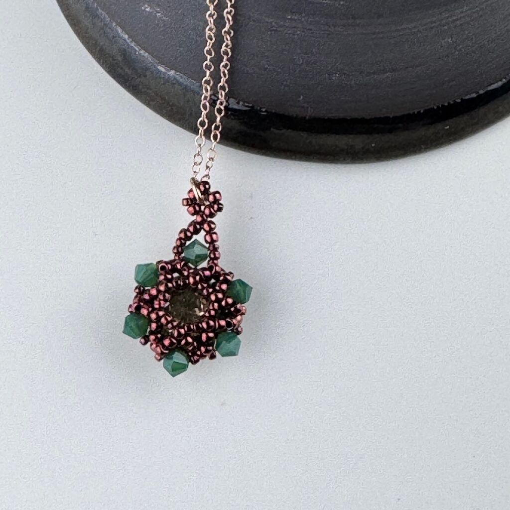 Twin Chatons pendant featuring a crystal centrepiece, surrounded with Japanese Seed Beads and crystals.