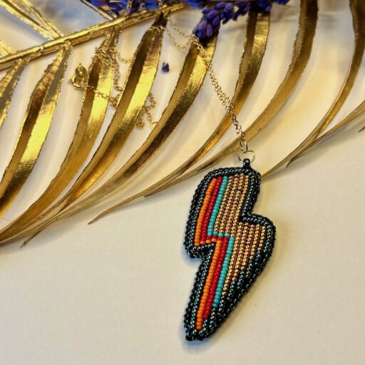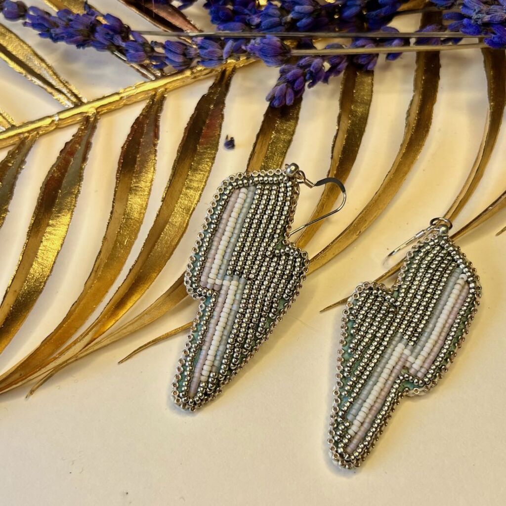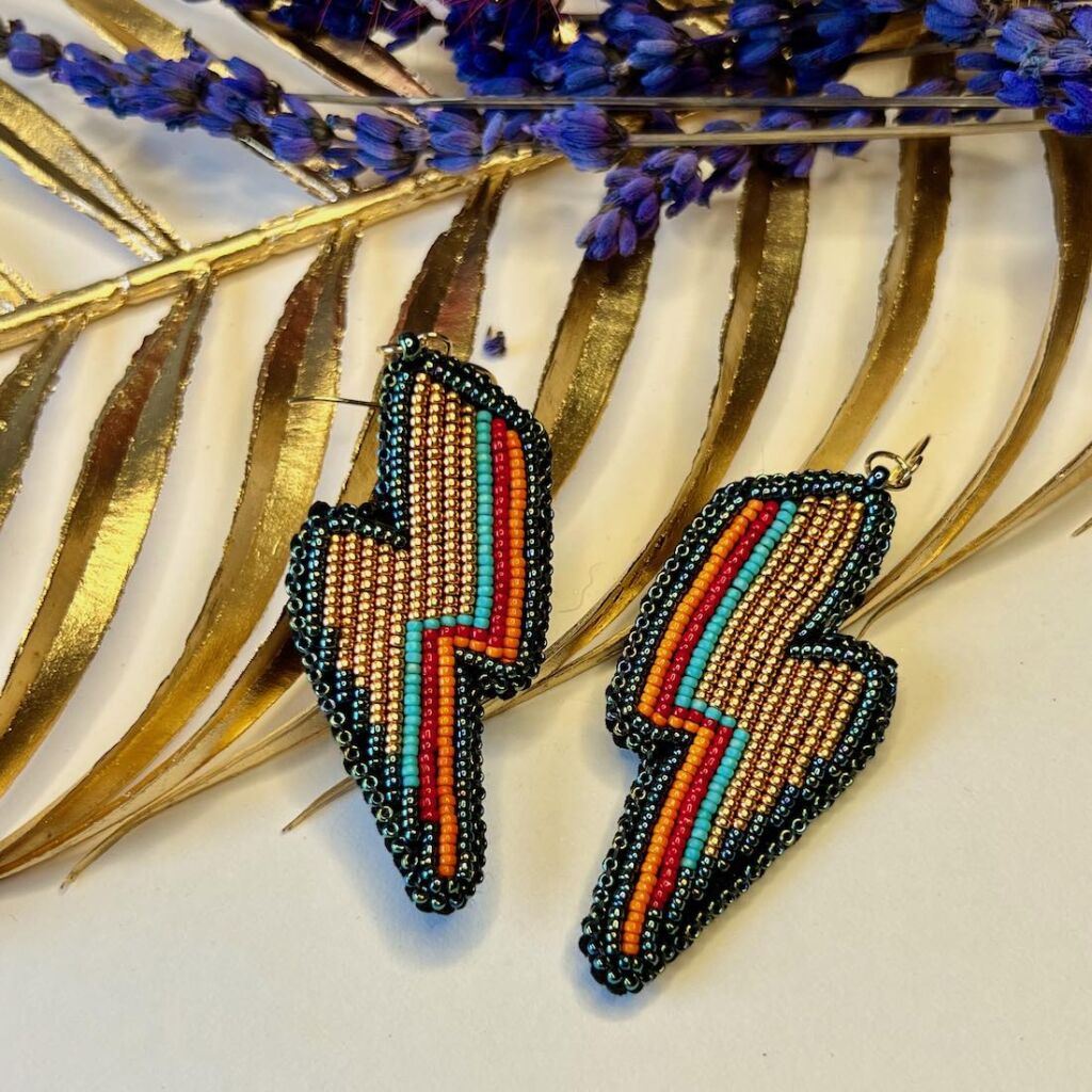 Striking bead embroidered lightning bolt earrings. Be bold and unique!
